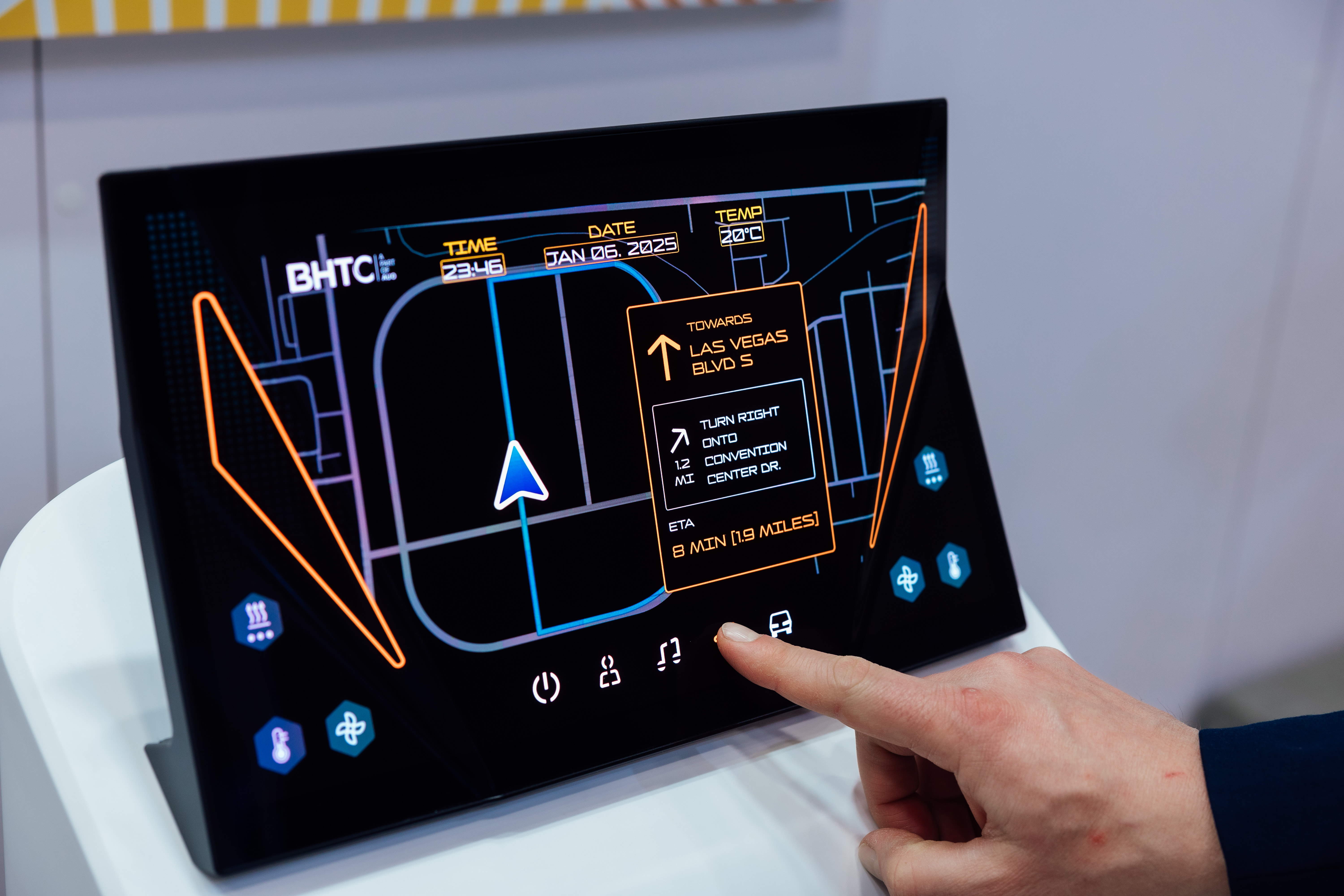 AUO Core Display technology combines with BHTC's world-leading capabilities of human-machine interface design to create Display HMI solutions AUO and BHTC jointly exhibited at CES for the first time, combining core display technology with BHTC's powerful automotive HMI capabilities, utilizing unique interactive control designs to demonstrate Display HMI solutions that are close to the needs of passengers.