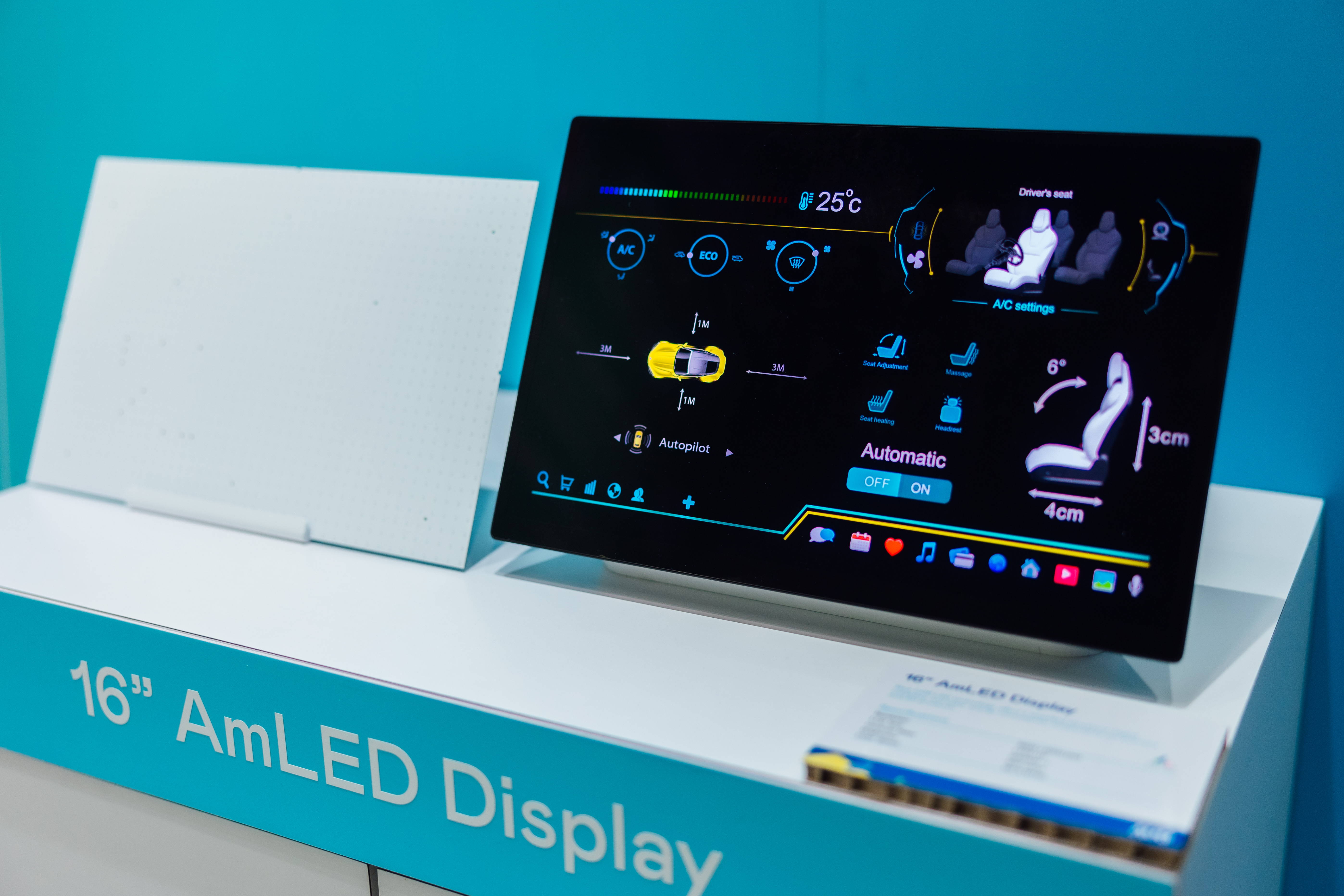 AUO amplified the succes of AmLED display technology, introducting into automotive products and successfully upgrading it. Compared with the previous generation, it can save 25% of energy consumption, while also being thinner and lighter.