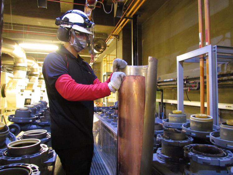 AUO transforms wastes into useful industrial or consumer products raw material. The picture shows highly-purified copper tube made from quenched wastes copper liquid.
