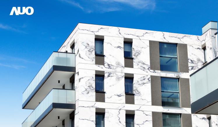 AUO SunBello Aesthetic Building Integrated PV solutions materialize benefits of energy, carbon reduction, heat insulation, and aesthetics.